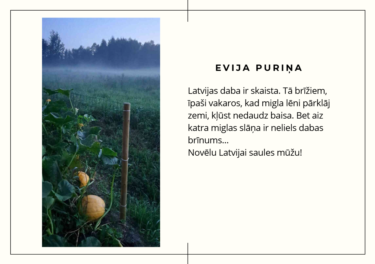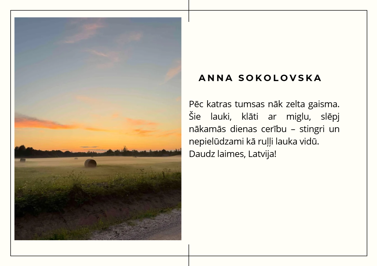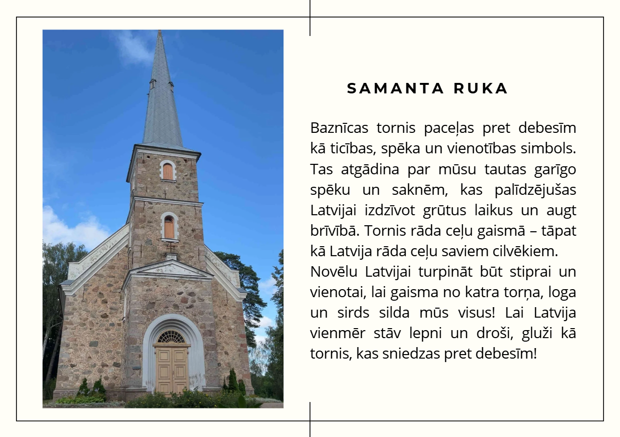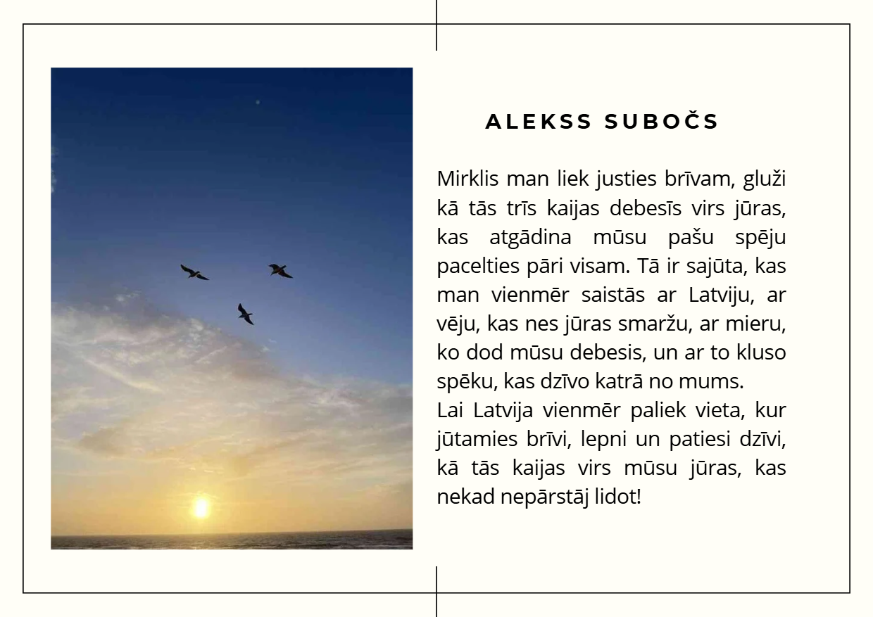 Aicinām ielūkoties 10. klašu jauniešu skatījumā uz Latviju — viņu fotogrāfijās atspoguļojas mīlestība pret dzimteni, piederības sajūta un lepnums par vietu, ko saucam par mājām. Katrs attēls ir personīgs stāsts par to, kāpēc Latvija ir vieta, kur jūtas piederīgi.